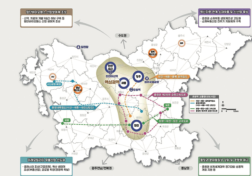 - 충청권 초광역 교통망을 중심으로 지역거점 연결